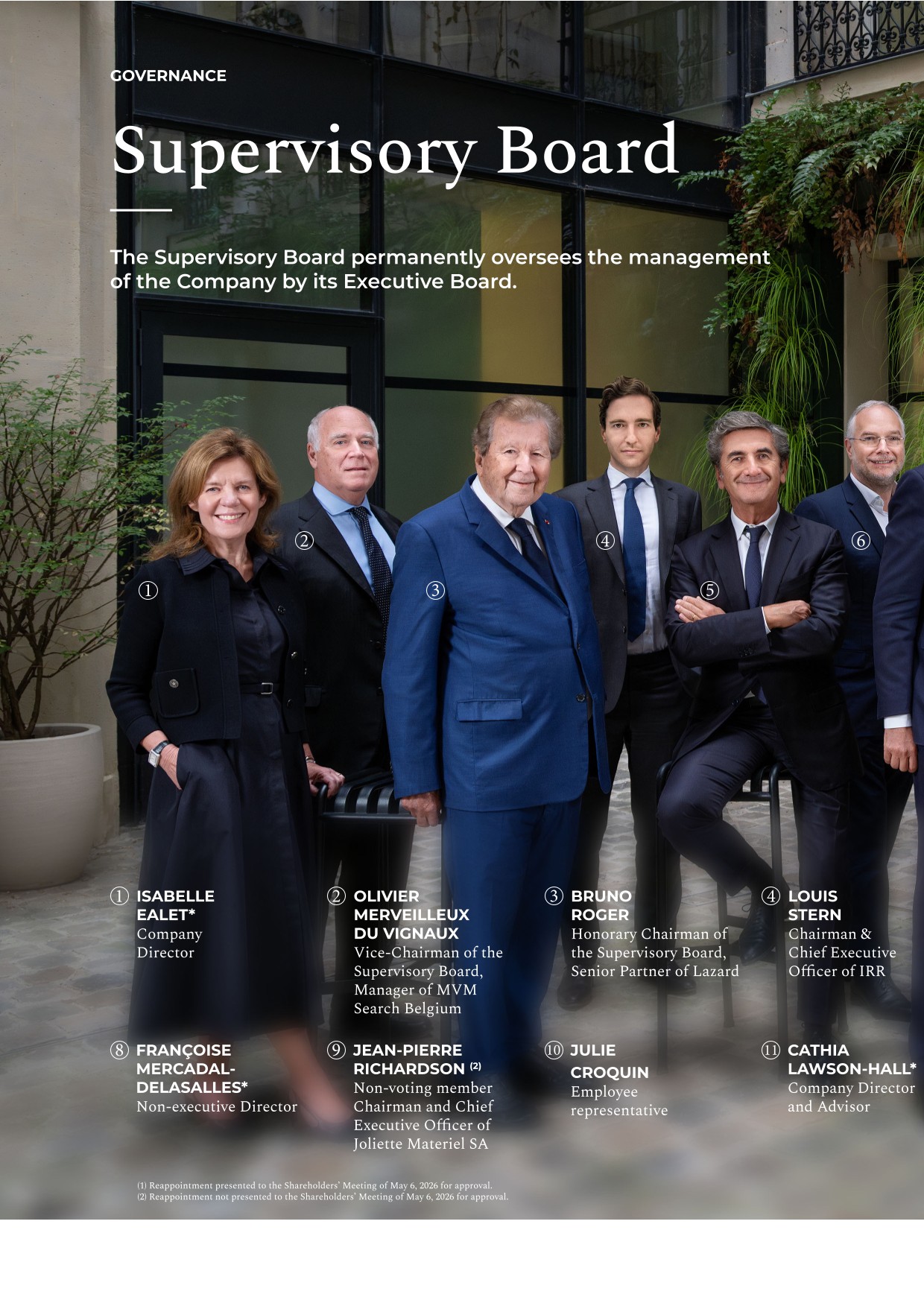 Pursuant to Articles L. 225-27 part 2 and L. 225-27-1, II, part 2 of the French Commercial Code, members serving as a basis to calculate the gender balance and independence of the Supervisory Board do not include the two employee representatives or the non-voting member.