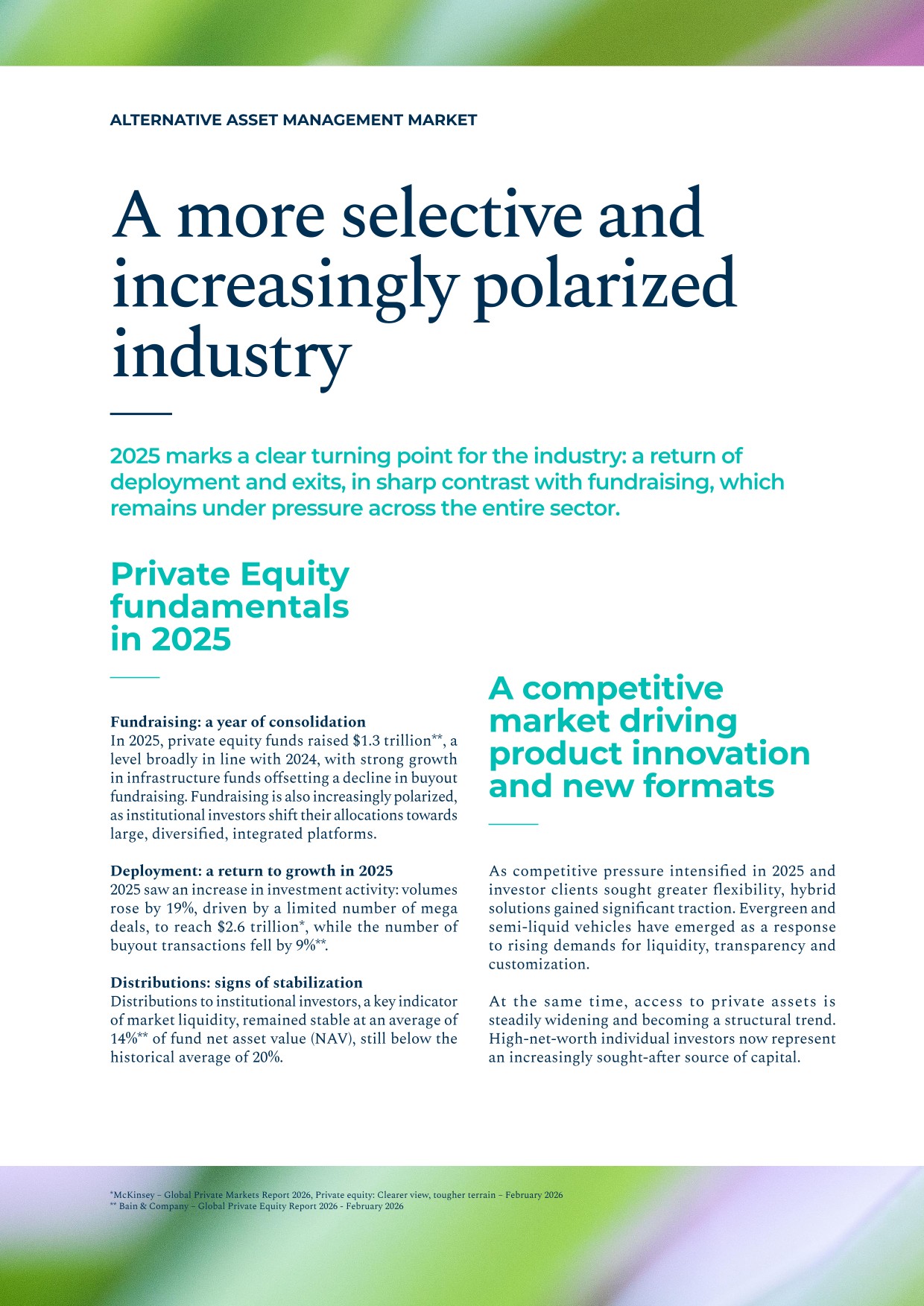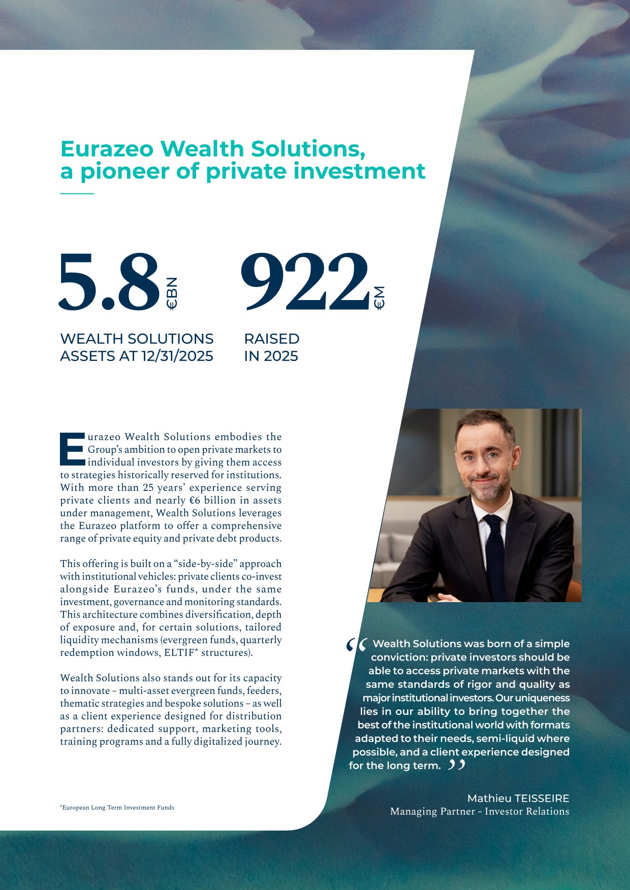 - ▰Launch of two new pan-European Wealth funds. These two new evergreen funds are specialized by asset class: private debt (EPIC) and secondary private equity (EPSO);