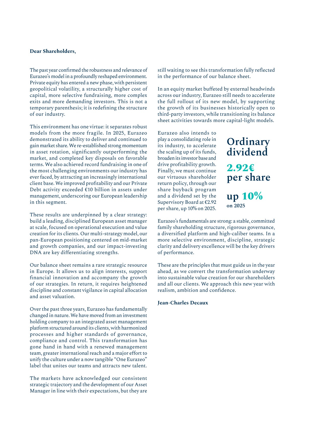 - ▰Olivier Millet stepped down from his roles as Managing Partner and member of the Eurazeo Executive Board and became Senior Advisor to the Elevate and NovSanté strategies;