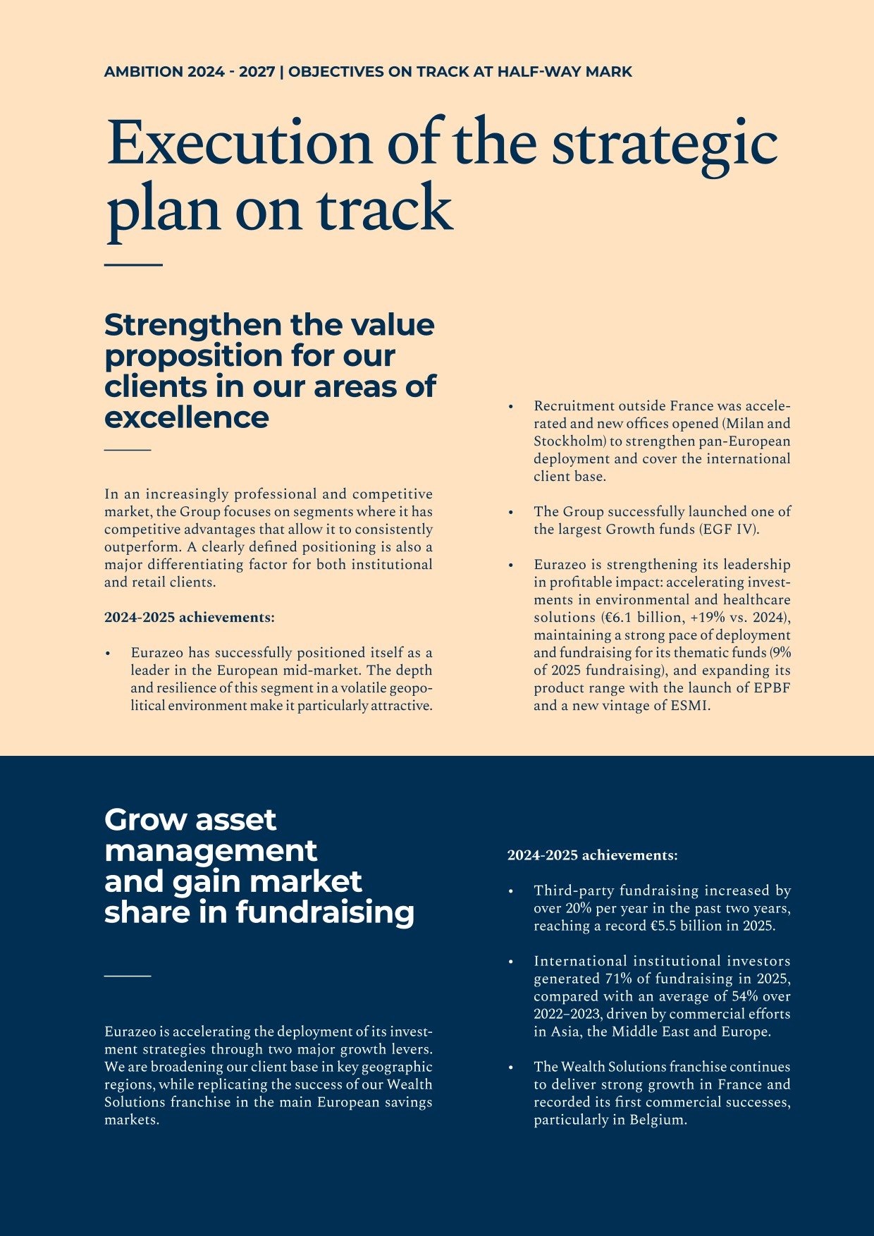 - ▰strong EDP VII fundraising momentum, with sustained growth in fundraising in line with its target;
